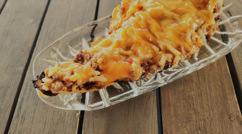 Print Ingredients 4 yellow squash Pesto ¼ cup chopped basil ¼ cup olive oil ½ teaspoon salt 1 teaspoon crushed garlic ½ cup grated Parmesan cheese Stuffing 1 cup onion, diced ½ cup bell pepper, diced 1 tablespoon butter.....