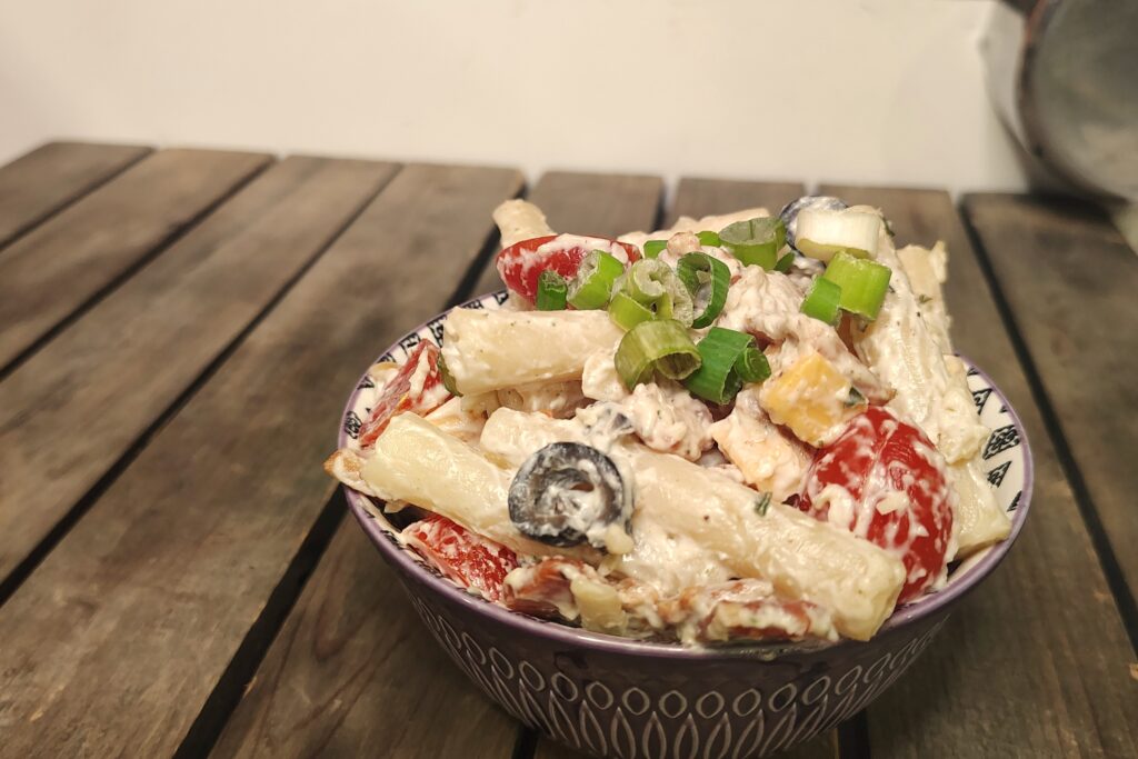 Print Yes, it’s a salad, but ranch dressing makes anything better, right? Then you see that it has bacon. How could it go wrong? Relax, this is a salad in that the ingredients are mixed, but there are no leafy.....